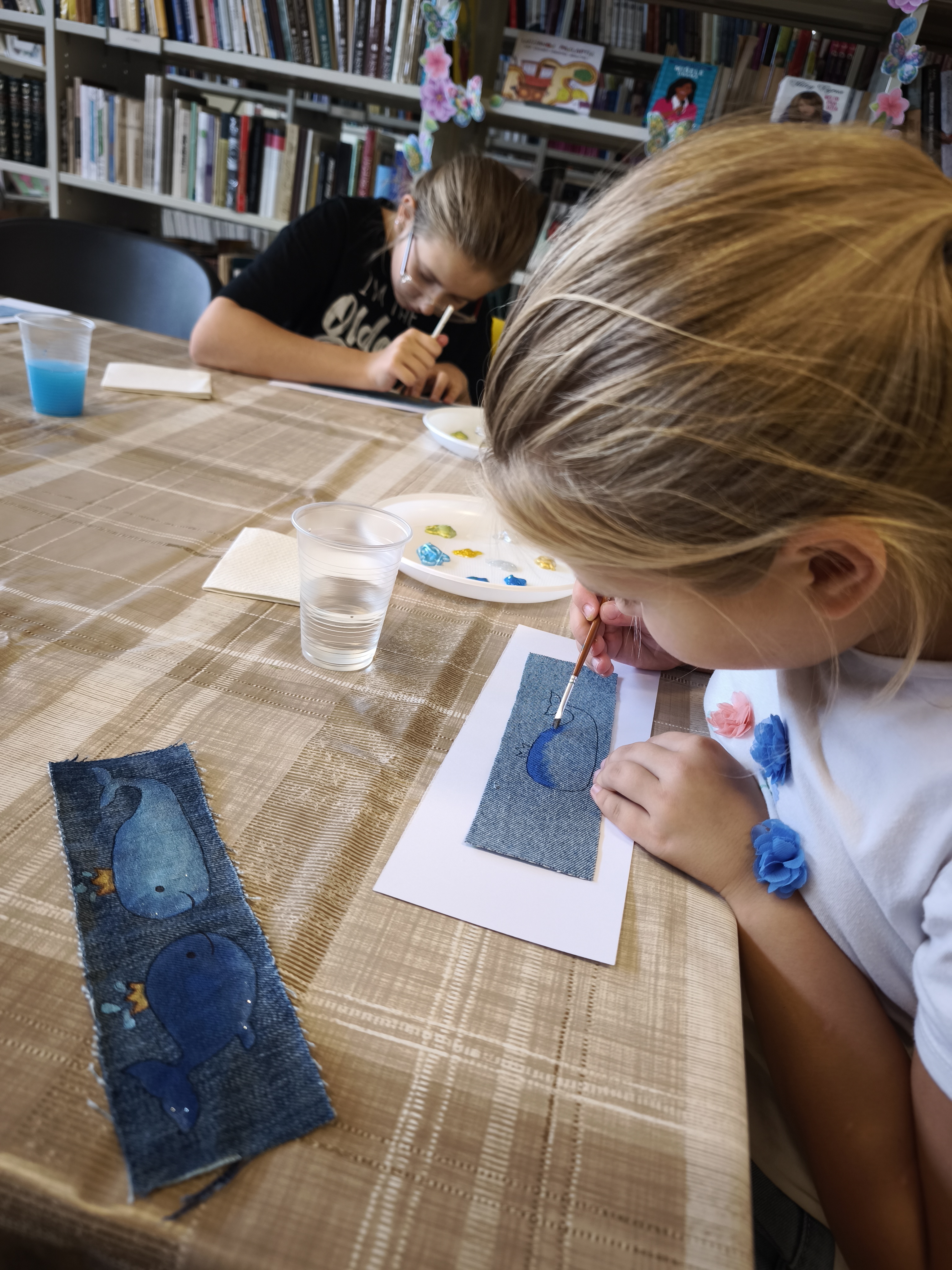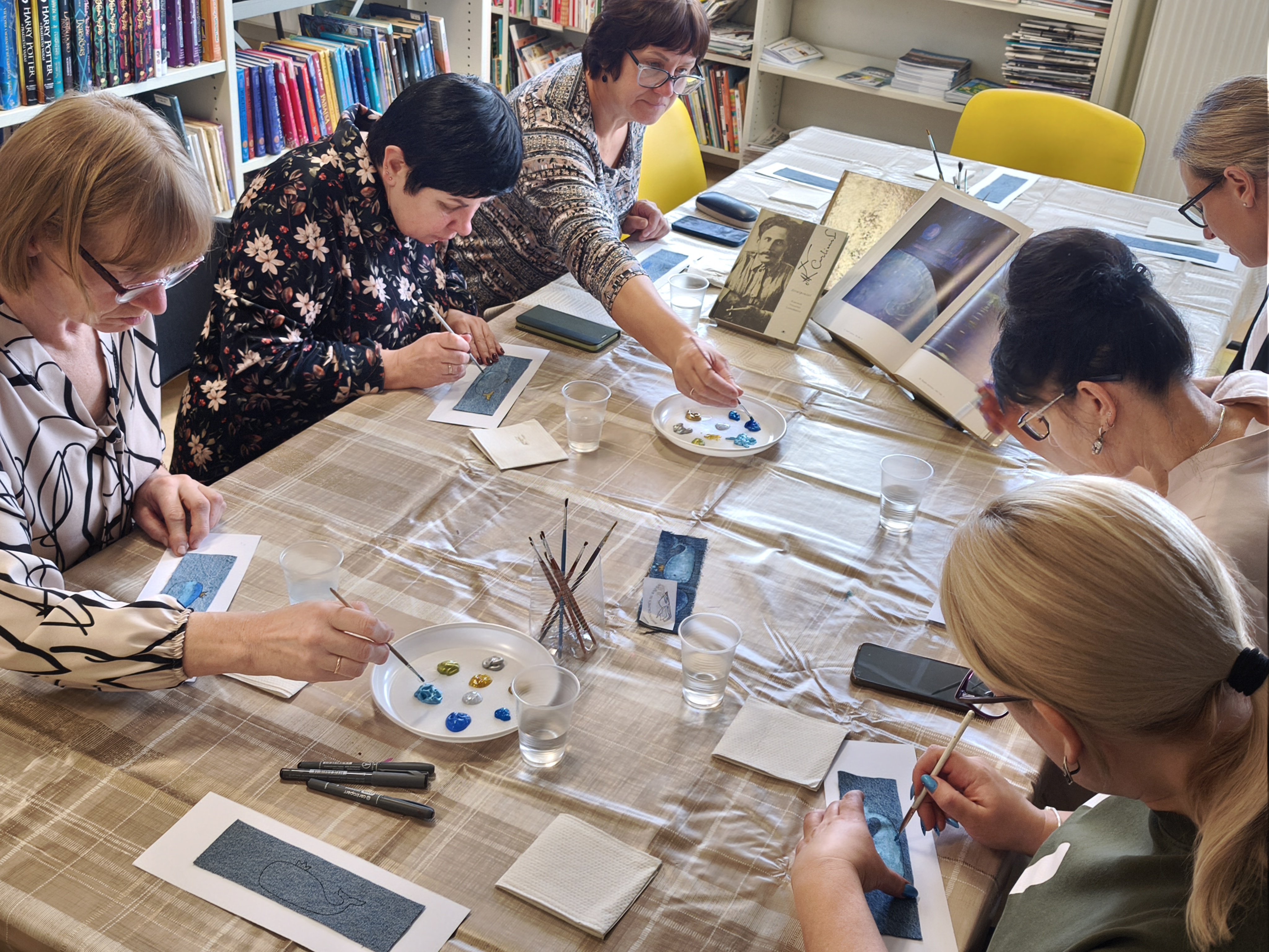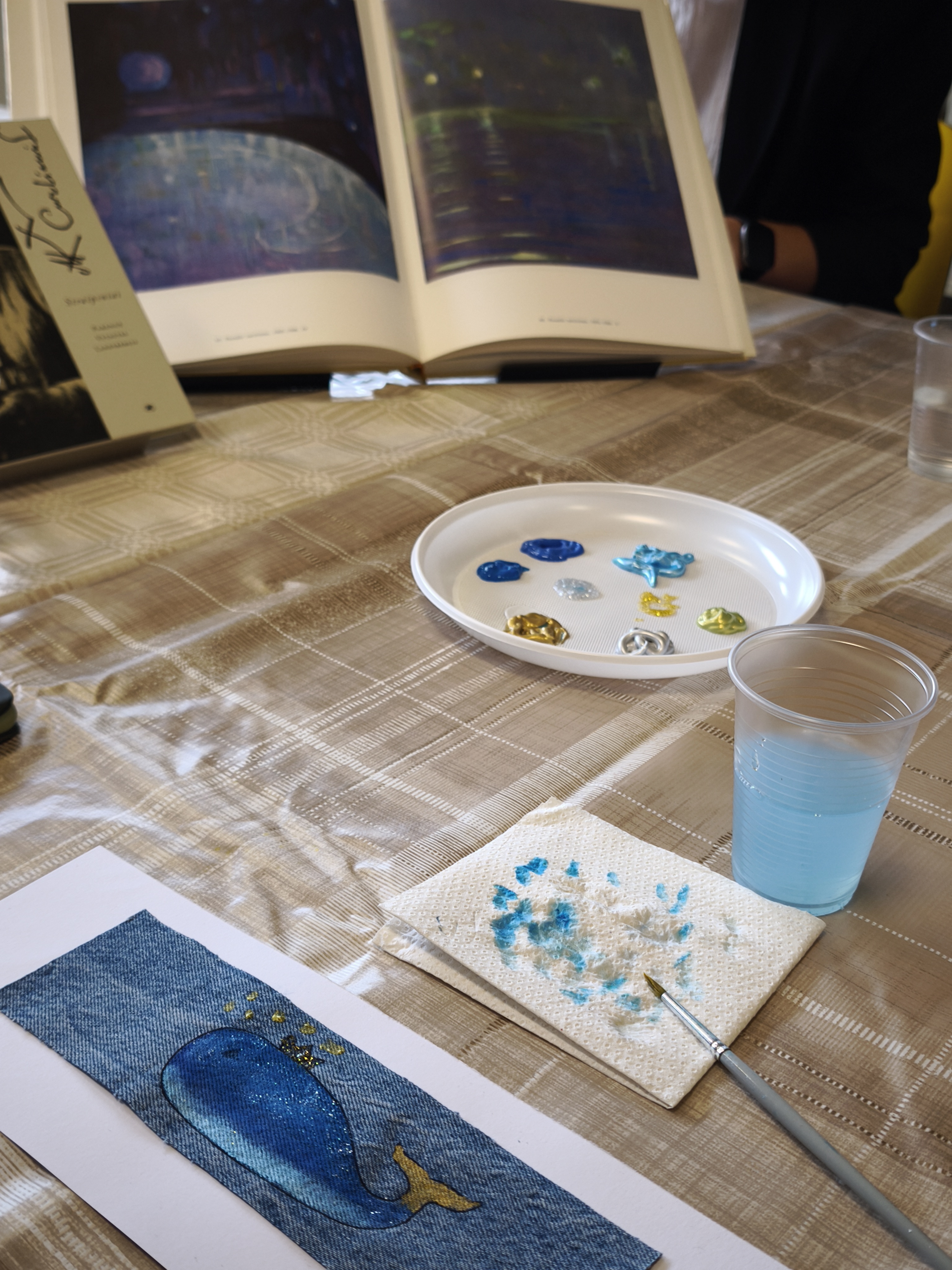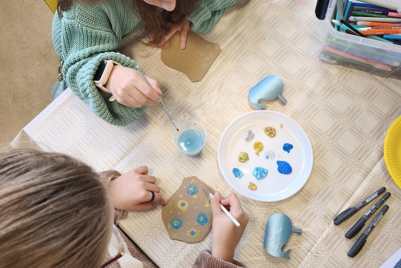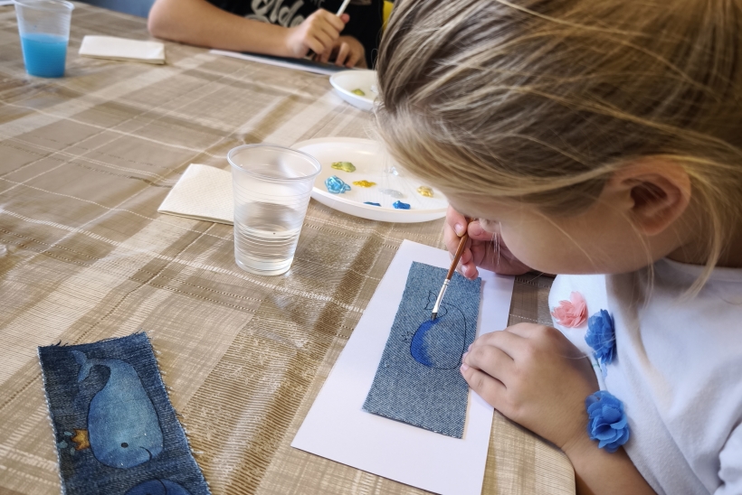 Pirmojoje edukacijoje „Skirtukas mano knygai“ vaikai ir suaugusieji kūrė unikalius knygų skirtukus iš tekstilės ir akrilinių dažų. Ant džinsinio paviršiaus gimė spalvingi banginukai – simboliai, įkvėpti gamtos, pasakų ir, žinoma, Čiurlionio kūrybos. Užsiėmimo metu kalbėta apie tvarumą, meninę saviraišką bei apie tai, kaip Čiurlionis savo darbuose jungė muziką, tapybą ir gamtos motyvus.
