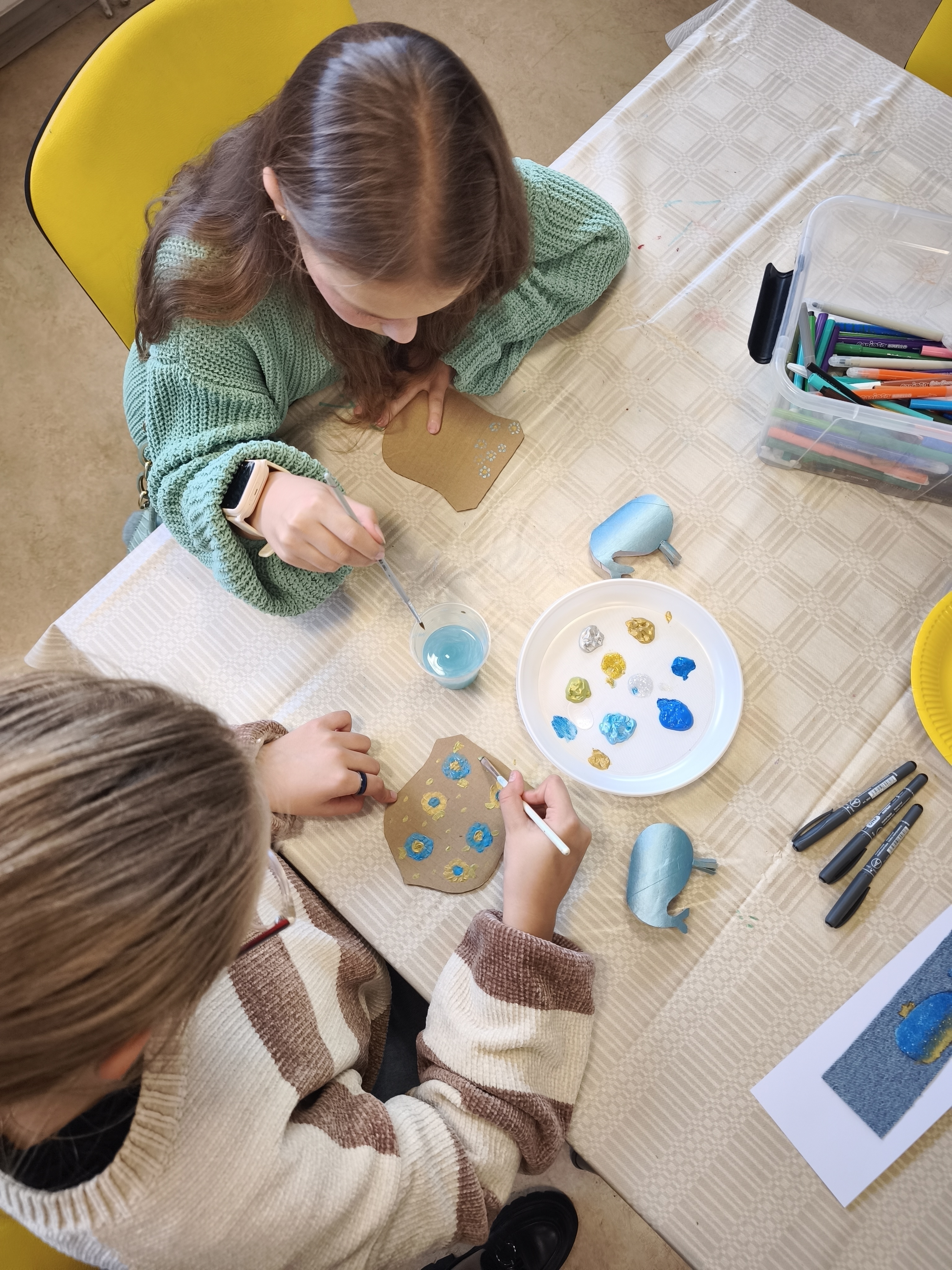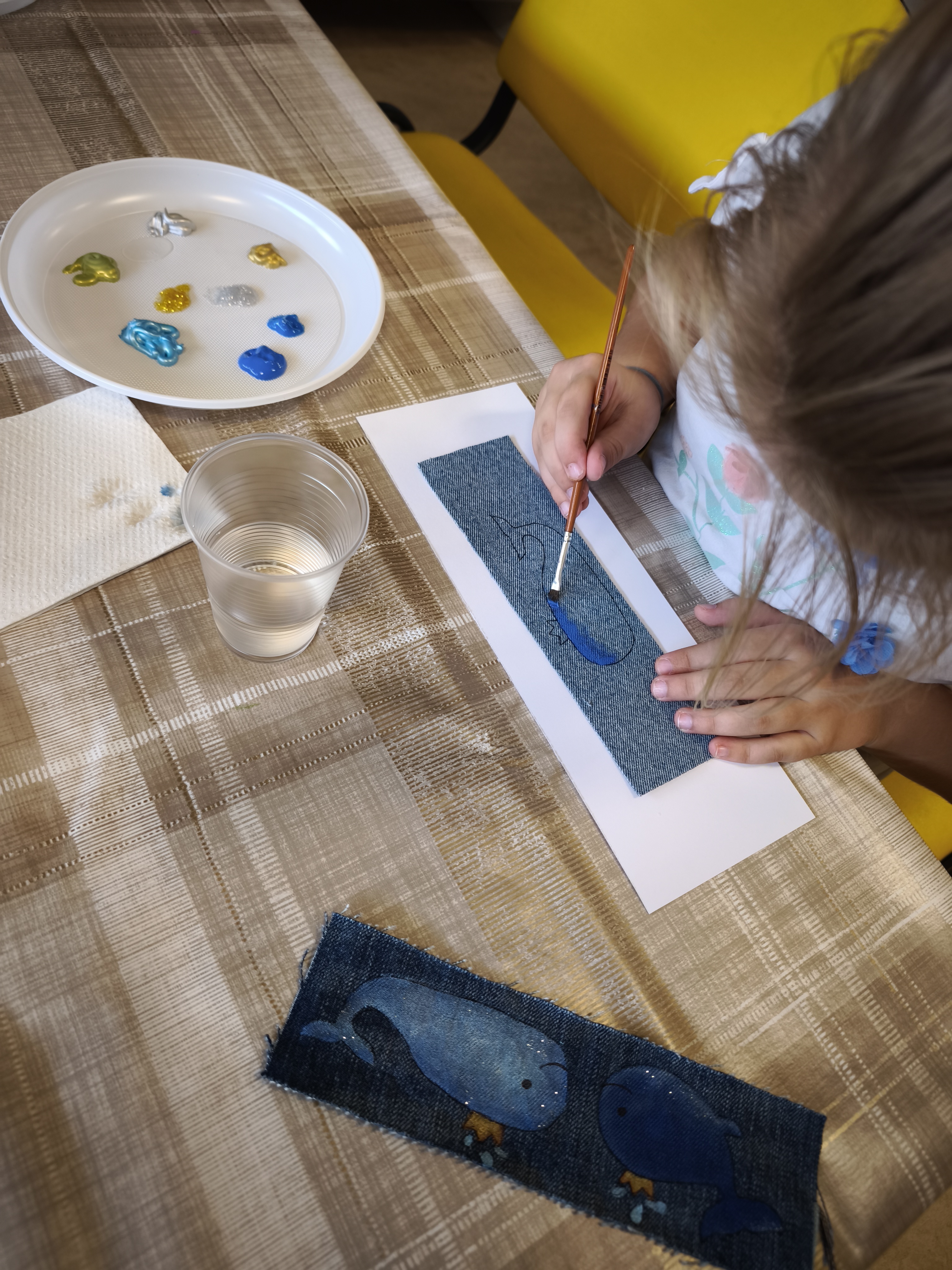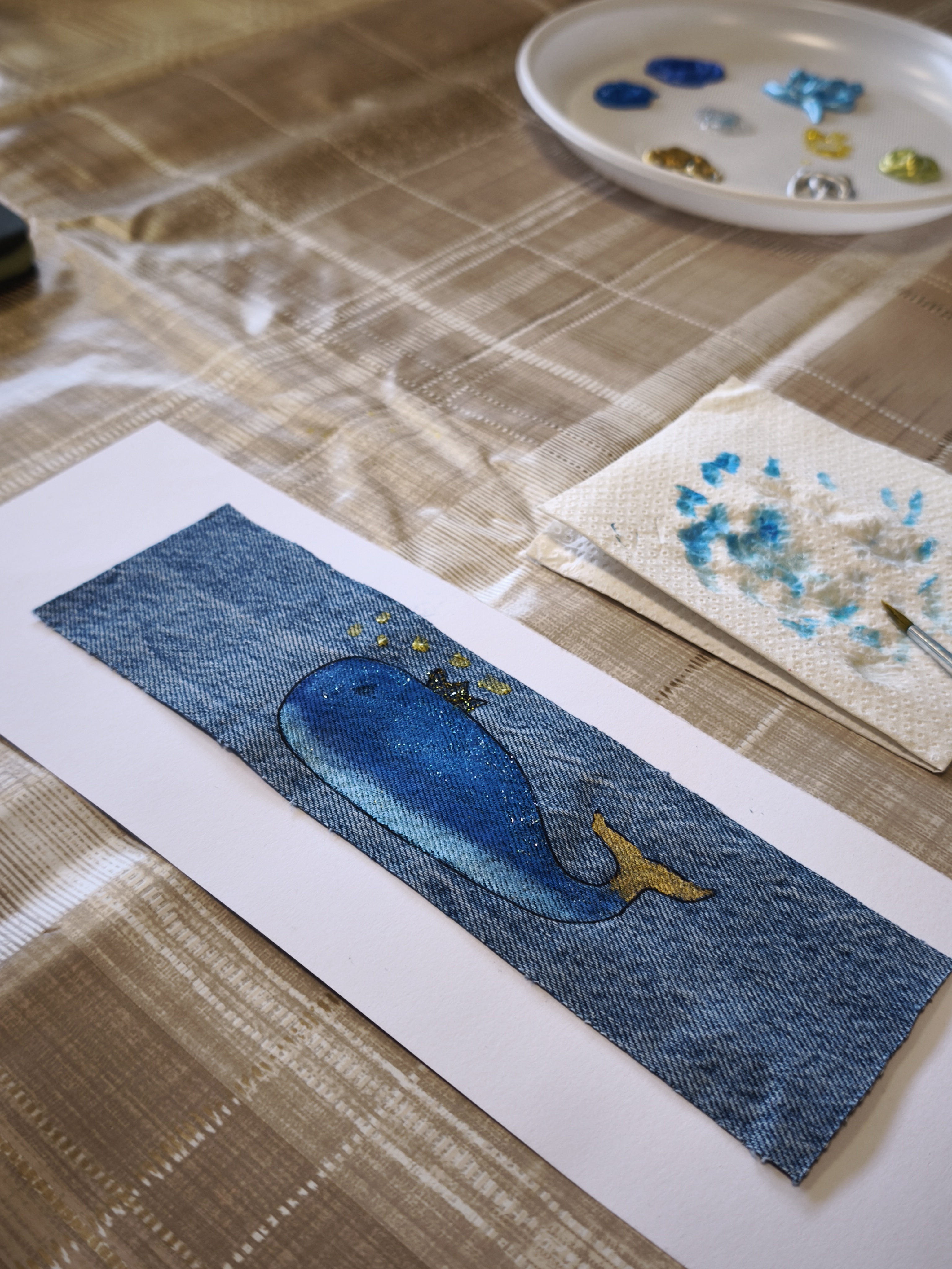 Pirmojoje edukacijoje „Skirtukas mano knygai“ vaikai ir suaugusieji kūrė unikalius knygų skirtukus iš tekstilės ir akrilinių dažų. Ant džinsinio paviršiaus gimė spalvingi banginukai – simboliai, įkvėpti gamtos, pasakų ir, žinoma, Čiurlionio kūrybos. Užsiėmimo metu kalbėta apie tvarumą, meninę saviraišką bei apie tai, kaip Čiurlionis savo darbuose jungė muziką, tapybą ir gamtos motyvus.