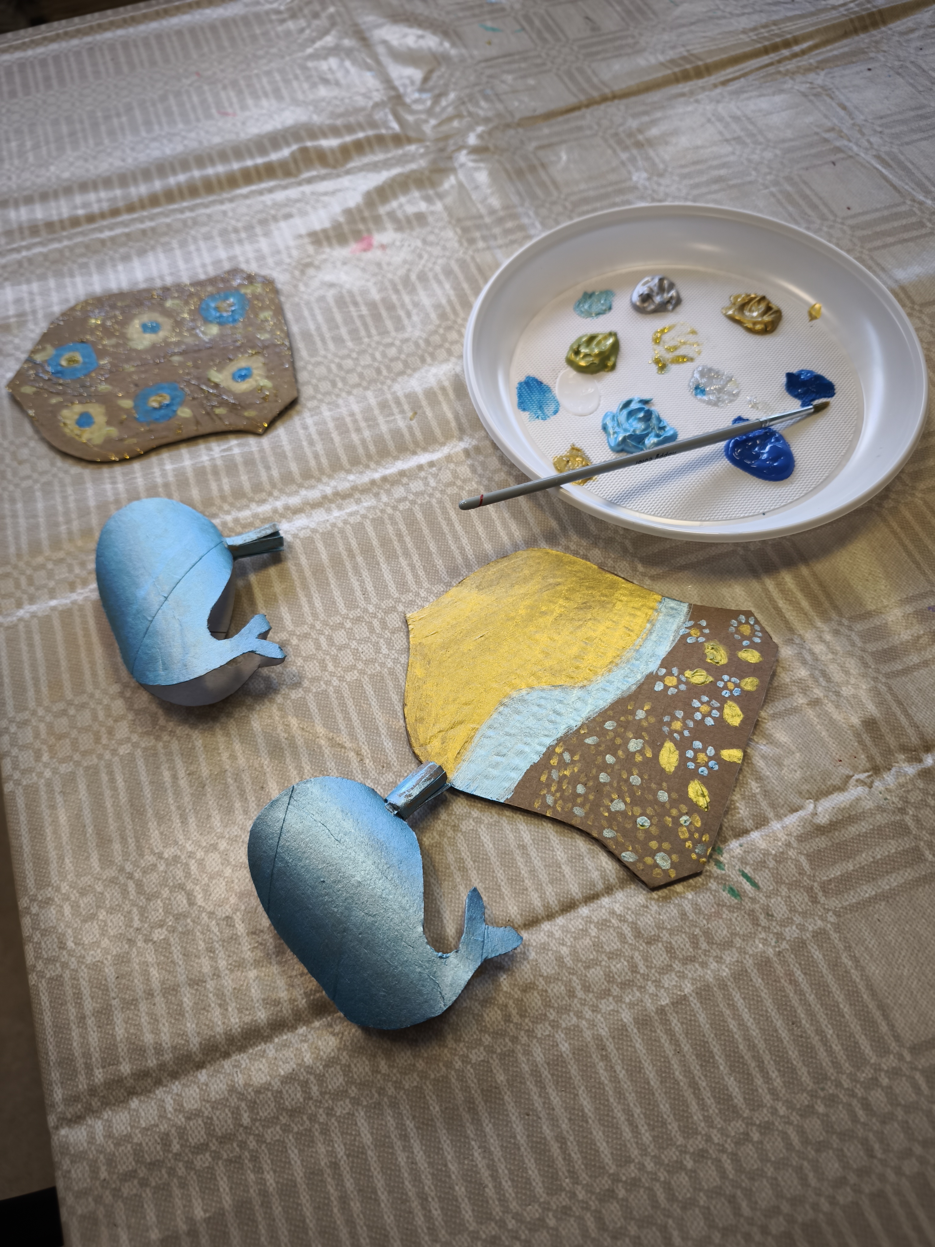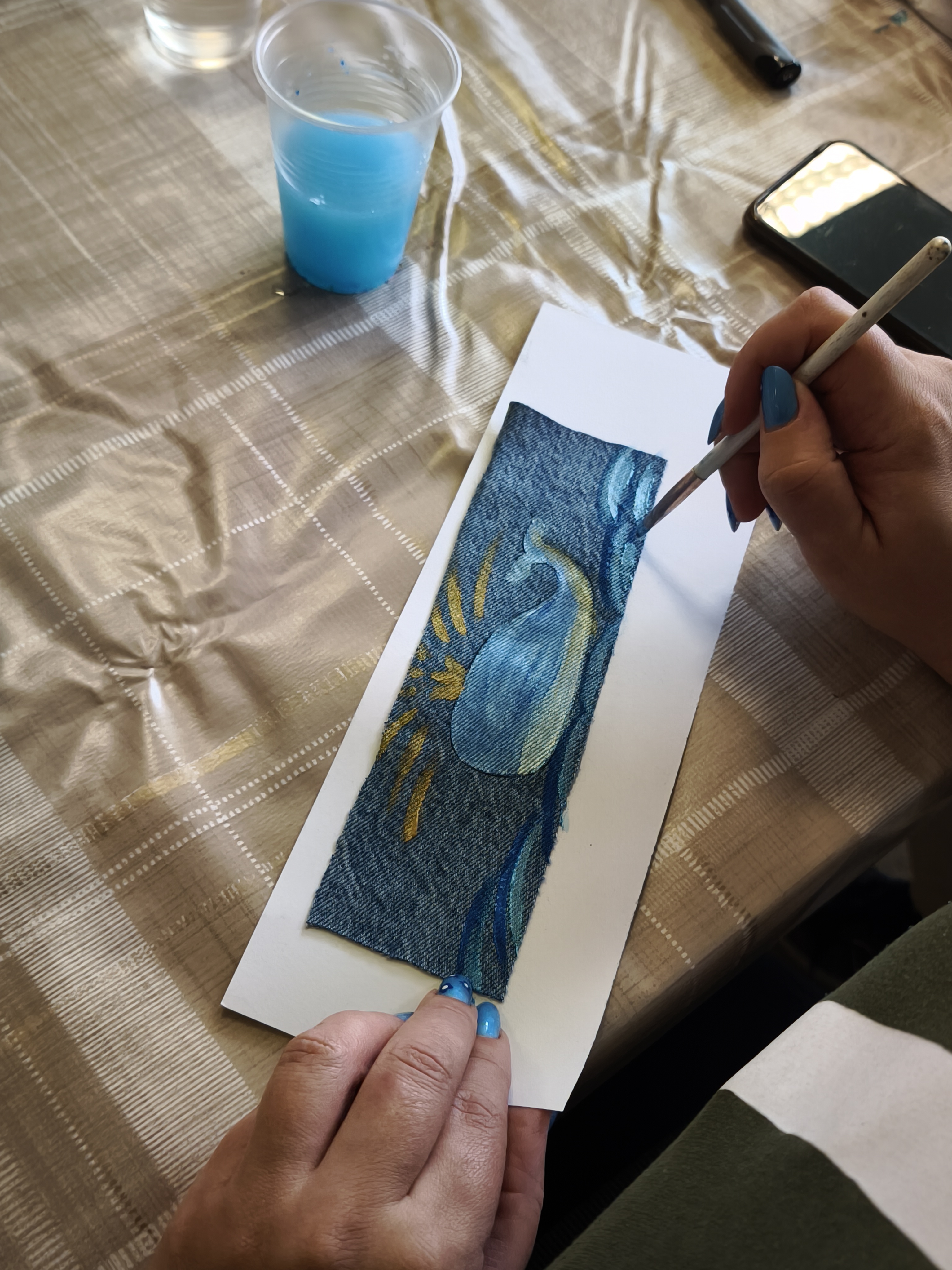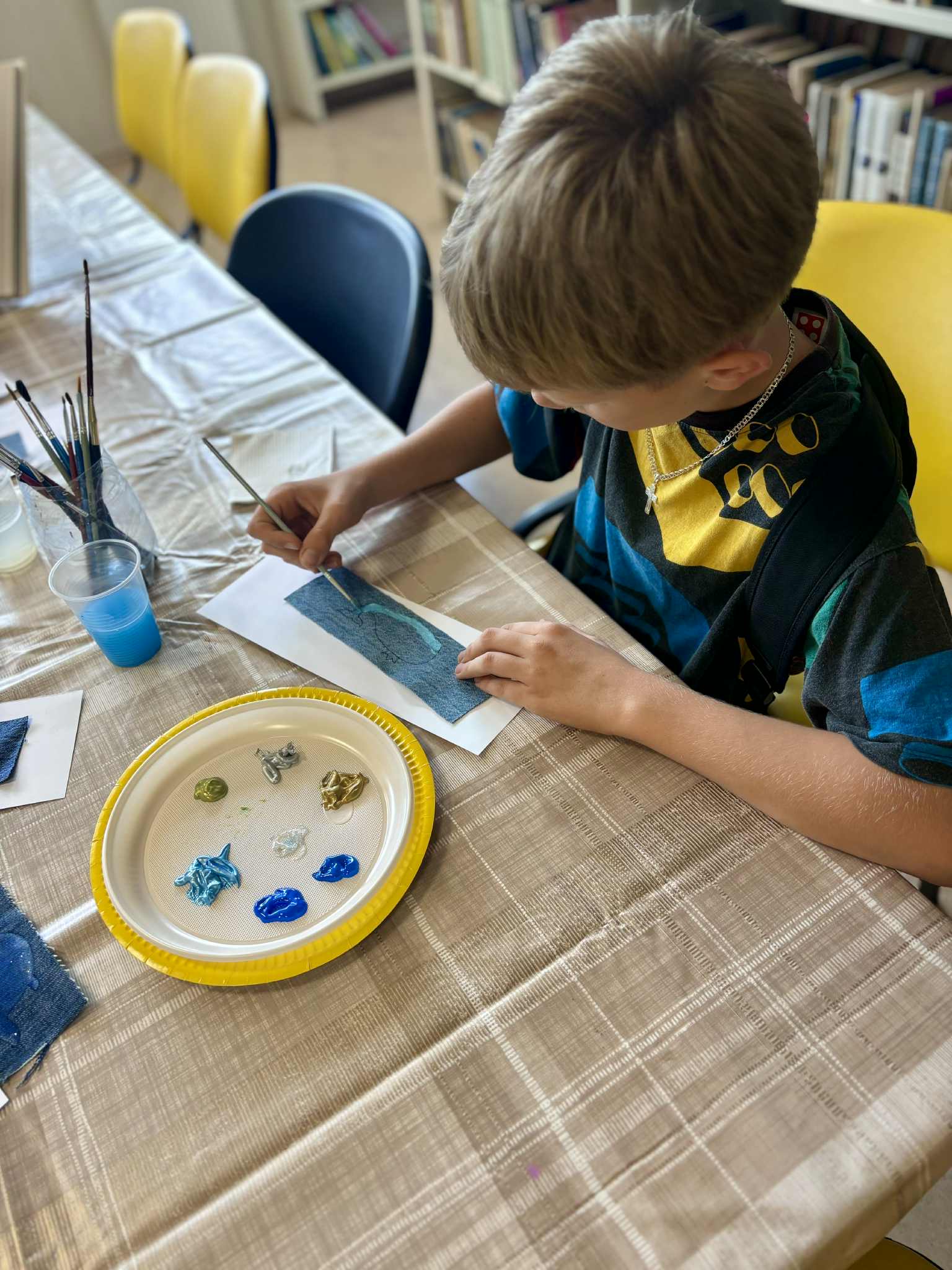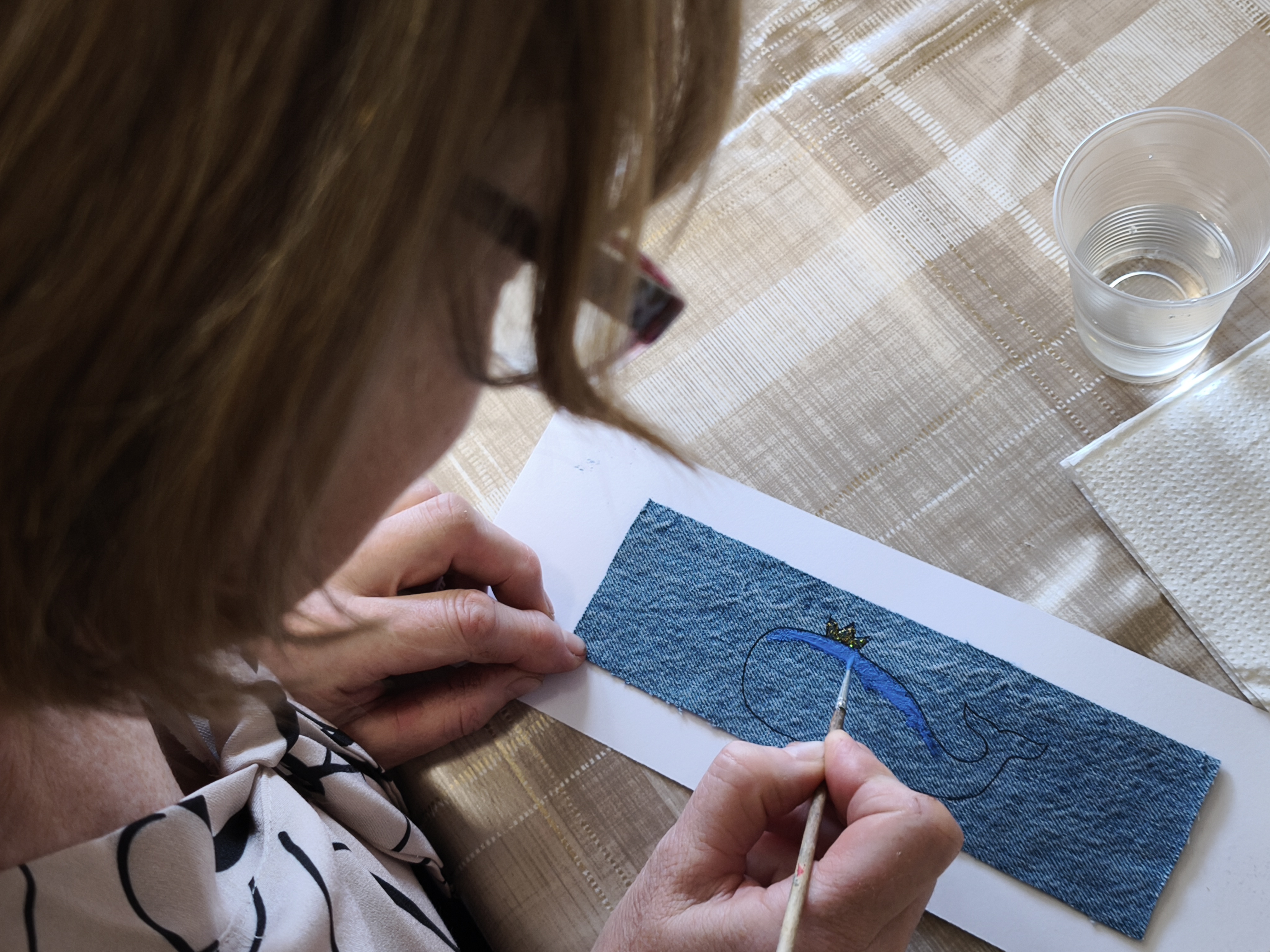 Pirmojoje edukacijoje „Skirtukas mano knygai“ vaikai ir suaugusieji kūrė unikalius knygų skirtukus iš tekstilės ir akrilinių dažų. Ant džinsinio paviršiaus gimė spalvingi banginukai – simboliai, įkvėpti gamtos, pasakų ir, žinoma, Čiurlionio kūrybos. Užsiėmimo metu kalbėta apie tvarumą, meninę saviraišką bei apie tai, kaip Čiurlionis savo darbuose jungė muziką, tapybą ir gamtos motyvus.