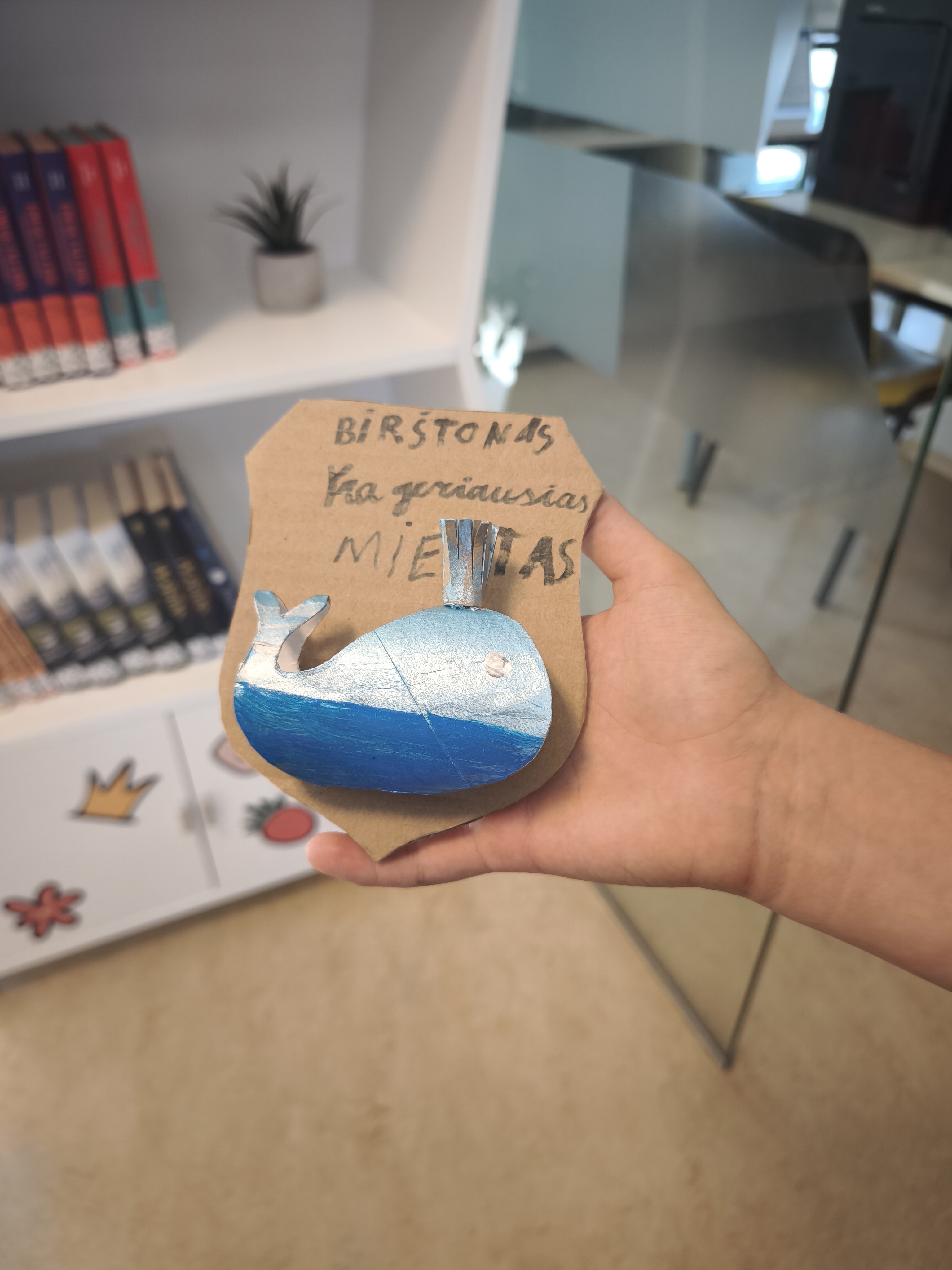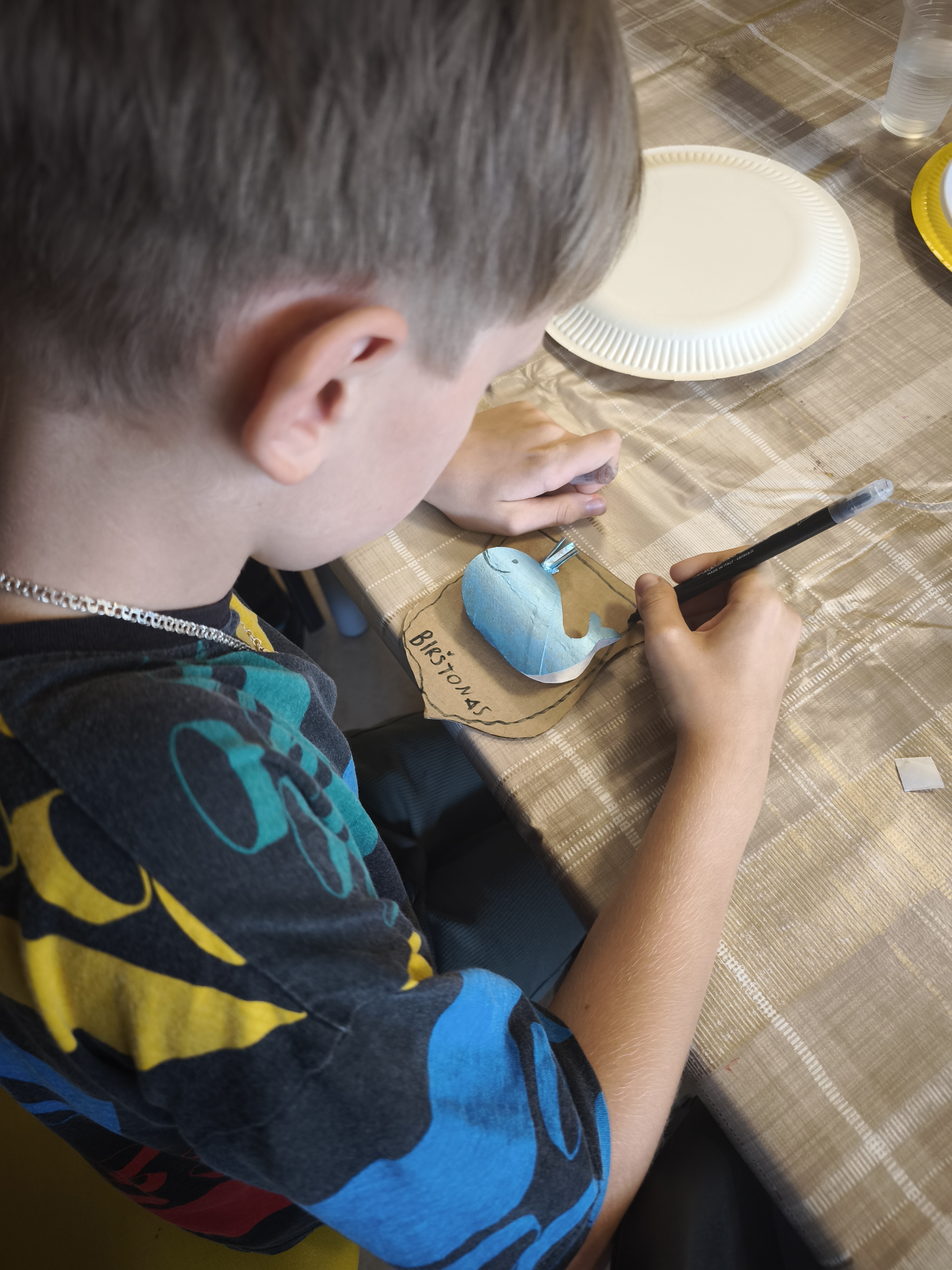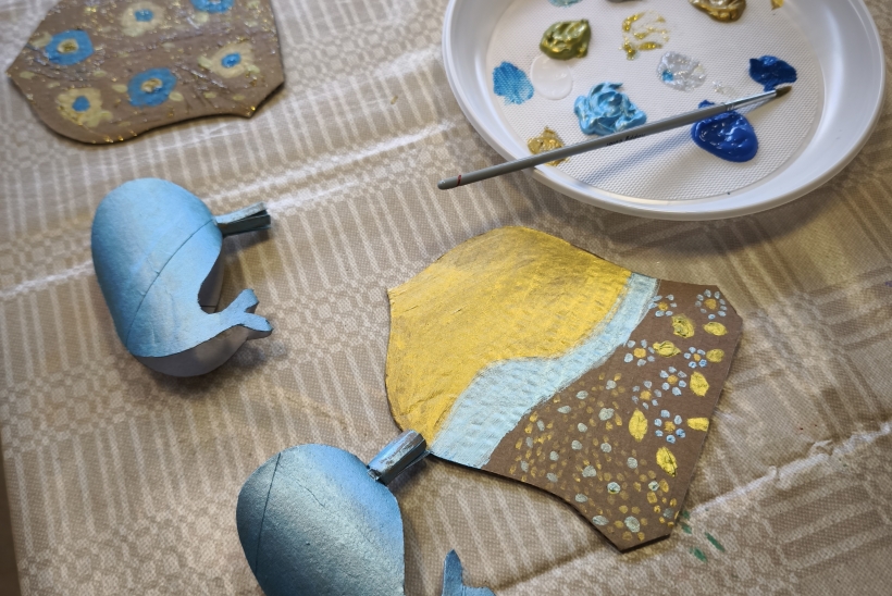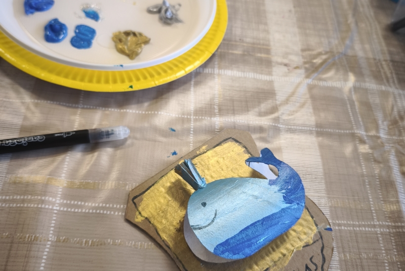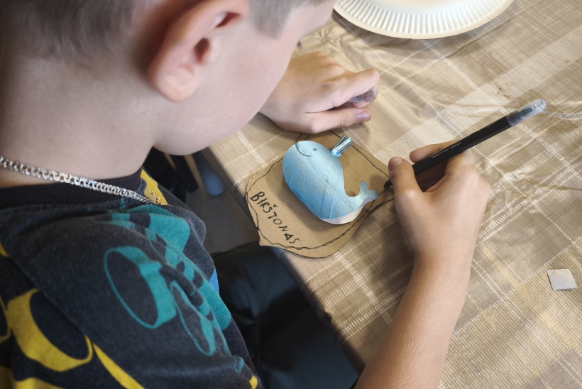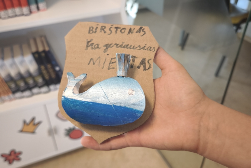 Antrojoje edukacijoje „Ką pasakoja Birštono herbo Banginukas?“ vaikai susipažino su Birštono miesto herbu, jo atsiradimo istorija ir simbolika. Aptartas ir legendinis „Vytauto“ šaltinio banginis, įkvėpęs herbo motyvą. Kūrybinėje dalyje dalyviai kūrė savo herbus su banginuko simboliu, panaudodami įvairias medžiagas. Užsiėmimo metu kalbėjome ir apie Čiurlionio kūrybą – kaip jo darbuose vaizduojamos fantazijos, simboliai ir gamtos elementai gali tapti įkvėpimu šiandienos jaunajam kūrėjui.