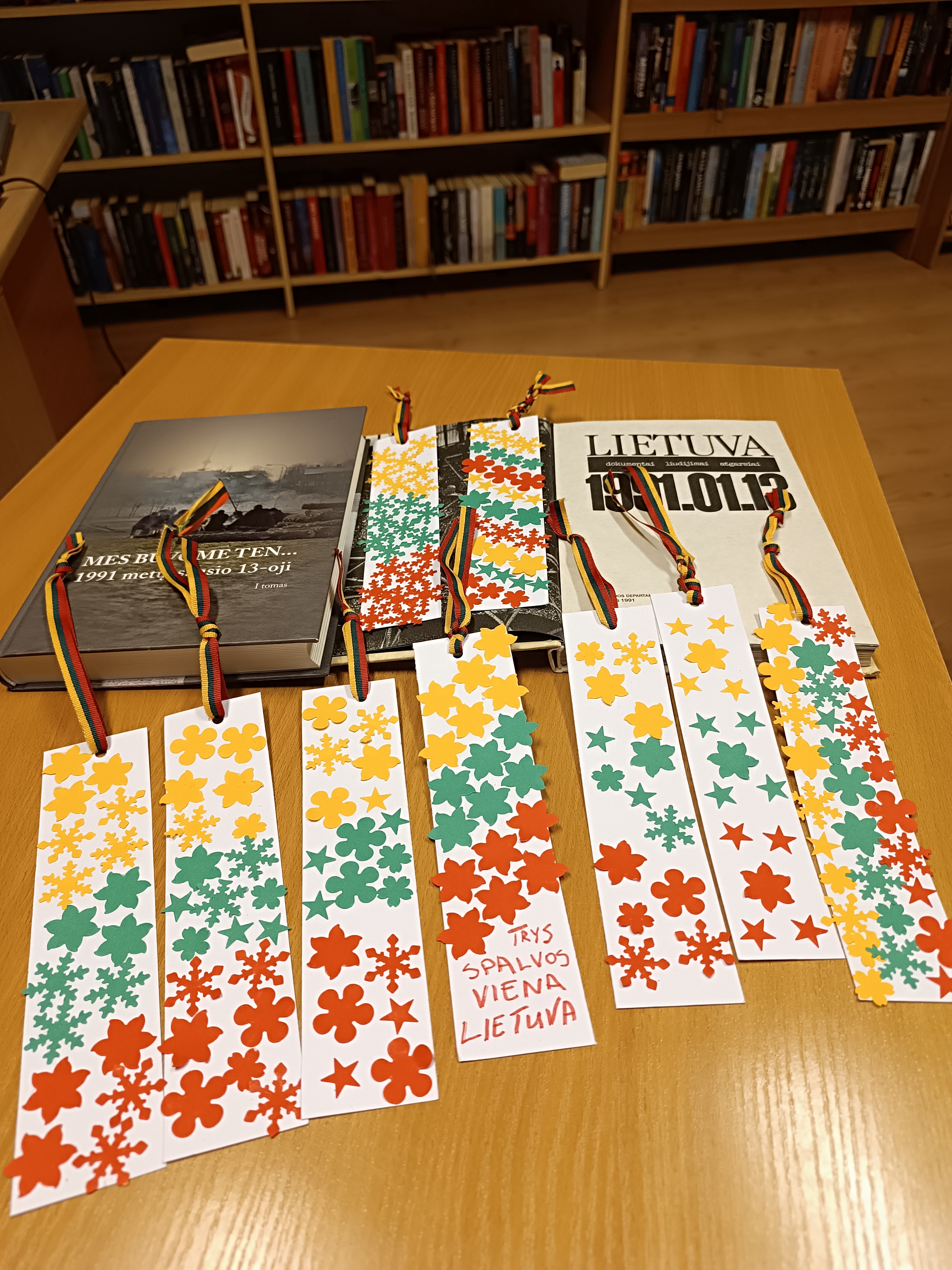 Birštono viešosios bibliotekos Nemajūnų padalinyje vyko edukacinė popietė „Trys spalvos – viena Lietuva“, skirta Sausio 13-ajai – Laisvės gynėjų dienai paminėti. Renginyje dalyvavę vaikai įsitraukė į kūrybinę veiklą – gamino knygų skirtukus Lietuvos trispalvės spalvomis.