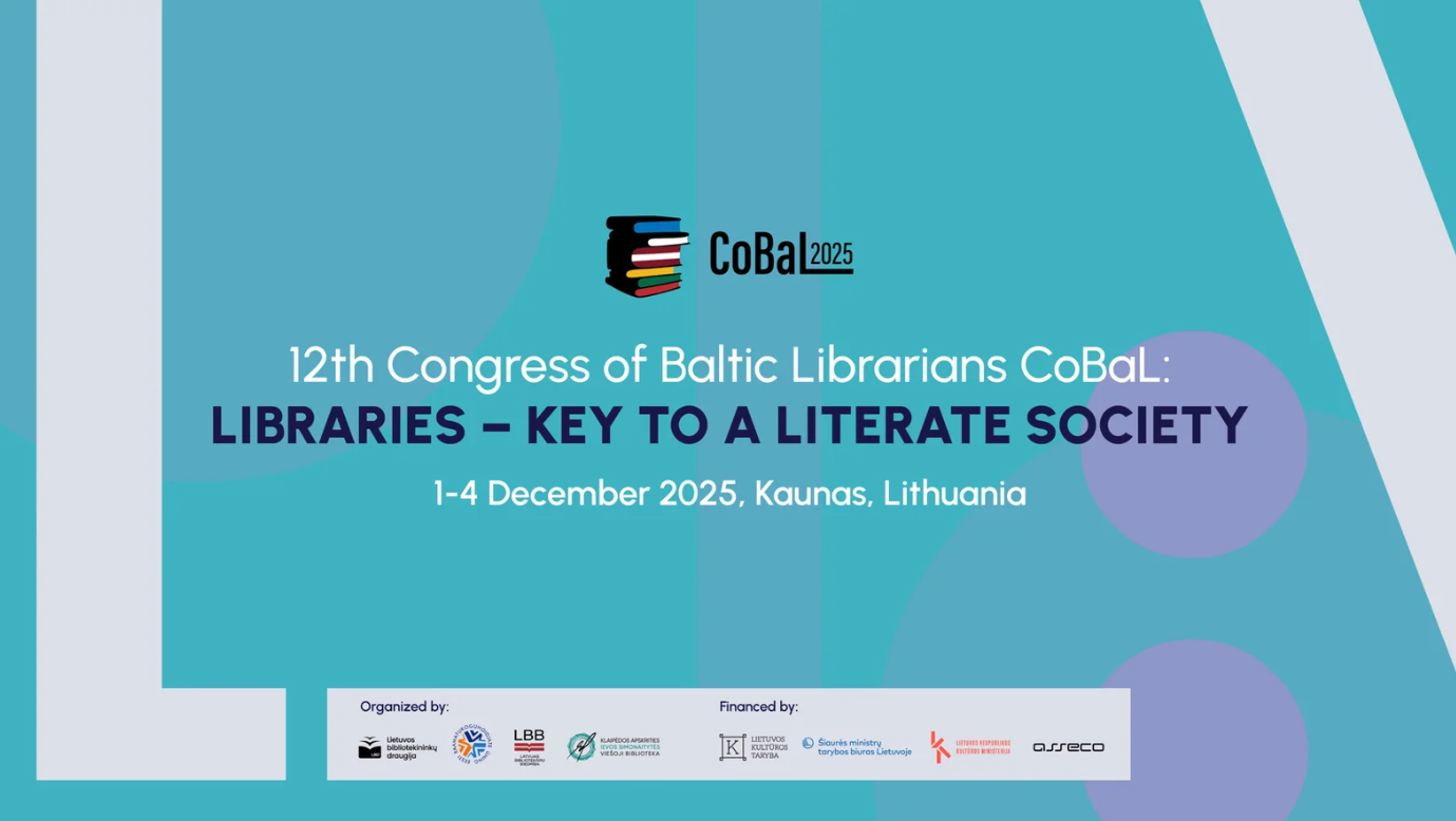 XII Baltijos šalių bibliotekininkų konferencija „CoBaL: bibliotekos – raktas į raštingą visuomenę“ Baltijos šalių bibliotekininkus, svečius iš Ukrainos, Suomijos, Švedijos ir Norvegijos 2025 m. gruodžio 2–3 dienomis sukvies į Kauną. Kas penkerius metus vykstantis kongresas šiemet organizuojamas Lietuvos bibliotekininkų draugijos kartu su Latvijos ir Estijos bibliotekininkų asociacijomis. Pagrindinė konferencijos tema – šiuolaikinio raštingumo iššūkiai ir bibliotekų vaidmuo jų sprendimams.