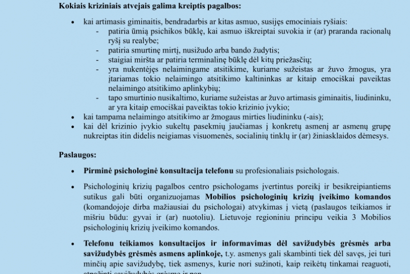 DĖL INFORMAVIMO APIE PSICHOLOGINIŲ KRIZIŲ VALDYMO PASLAUGAS LIETUVOJE