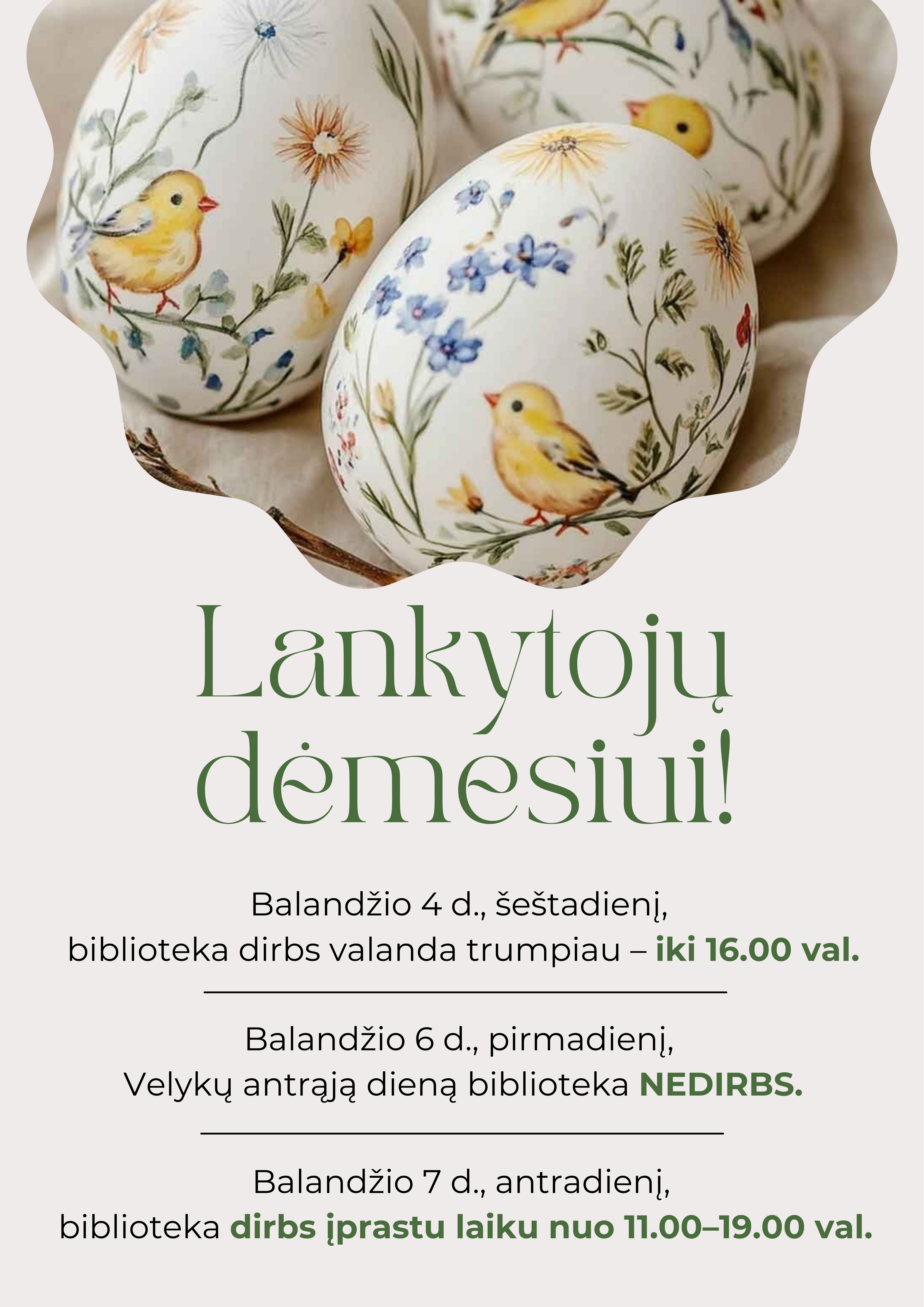Balandžio 6 d., pirmadienį, biblioteka nedirbs.