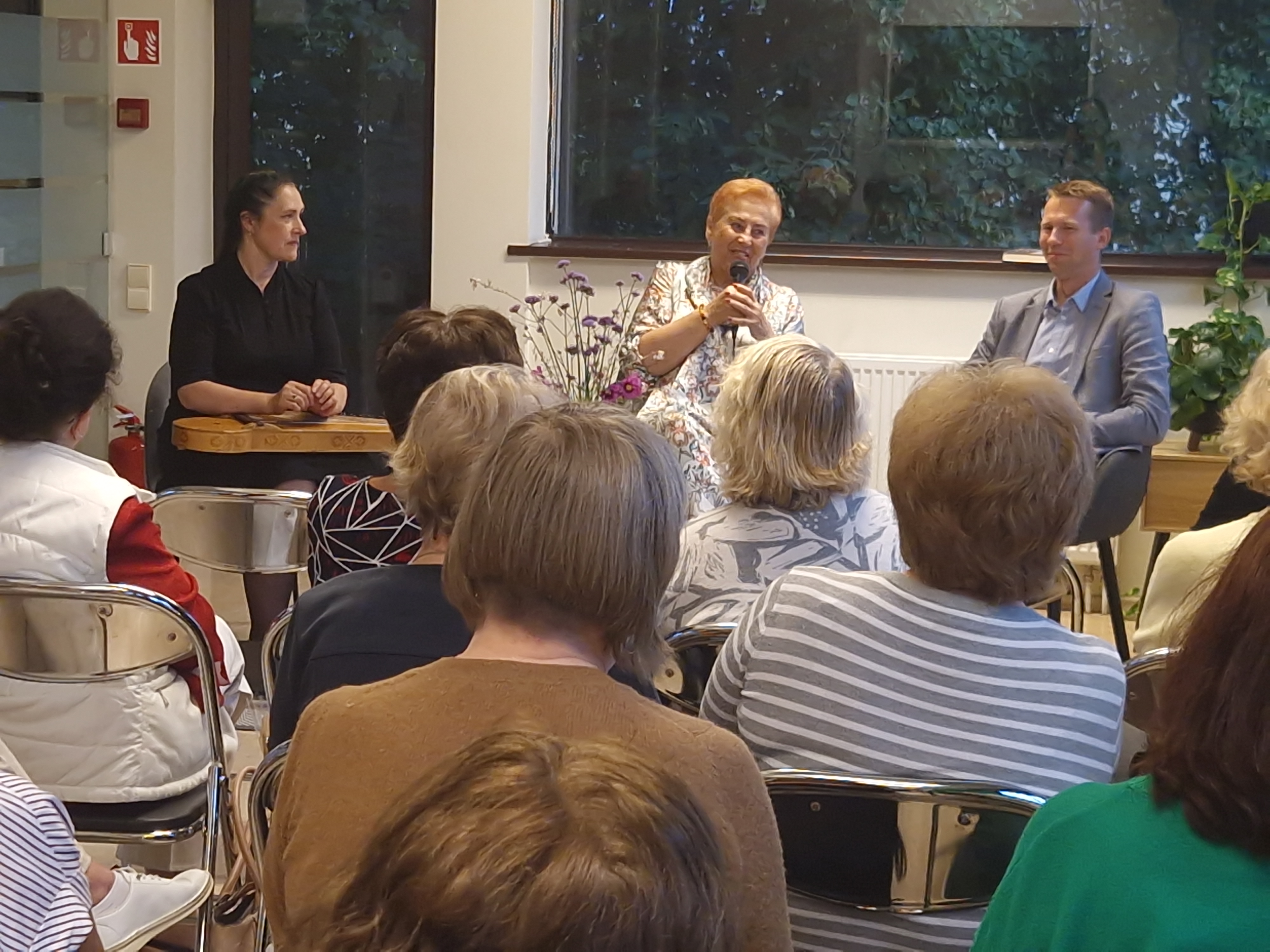 Nuoširdaus ir kupino šypsenų susitikimo metu iš įkvepiančio vakaro vedėjo Tautvydo Venciaus ir autorės pokalbio daugiau sužinojome apie ne vieną iškilią mūsų literatūros asmenybę, o etnologės Lauros Lukenskienės kankliavimas vakarui suteikė išskirtinio jaukumo.