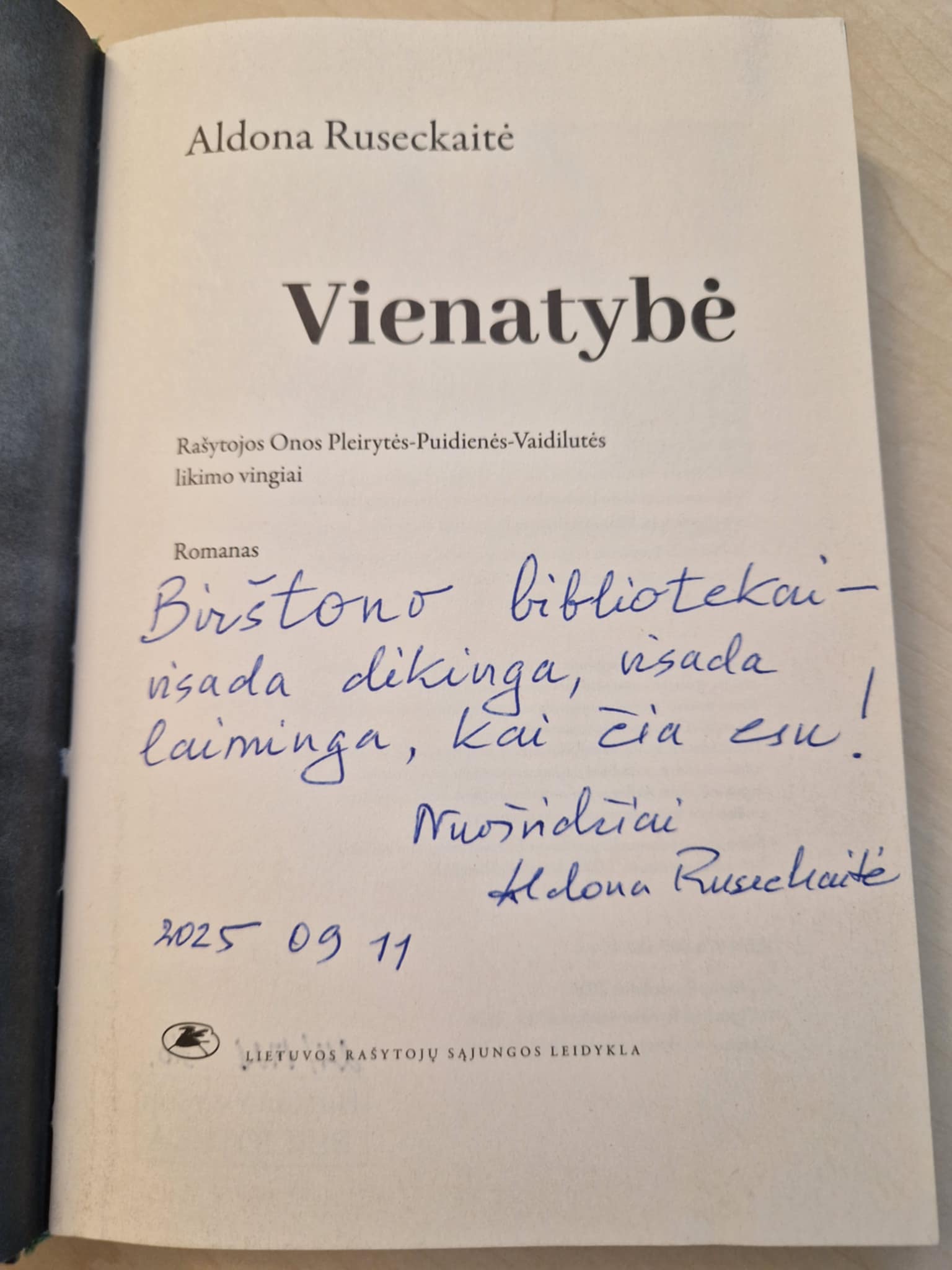 Bibliotekoje pristatytos naujausios rašytojos Aldonos Ruseckaitės knygos „Vienatybė“ (pasakojanti apie tarpukario prozininkės Onos Pleirytės-Puidienės-Vaidilutės gyvenimą) ir poezijos rinktinė „Prie horizonto atsigręžk“.