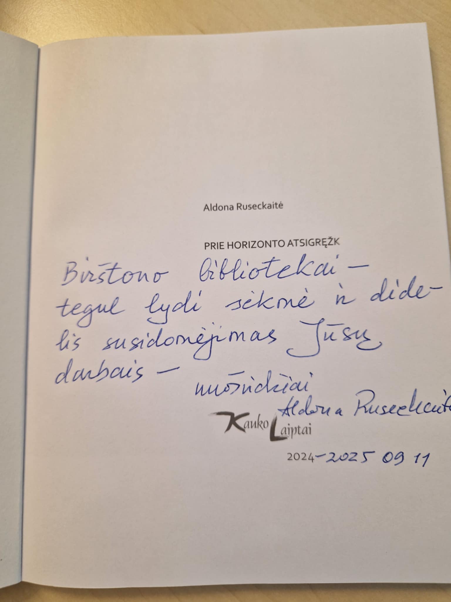 Renginio metu taip pat pristatyta ir naujausia autorės eilėraščių rinktinė „Prie horizonto atsigręžk“, apdovanota Dionizo Poškos literatūrine premija. Tai poezija, kurioje telpa jautrūs prisiminimai, pokalbiai su praeitimi, poetiškai įamžinti ilgesys, svajonės ir patirtys, susipinančios su gamtos ir buities detalėmis.