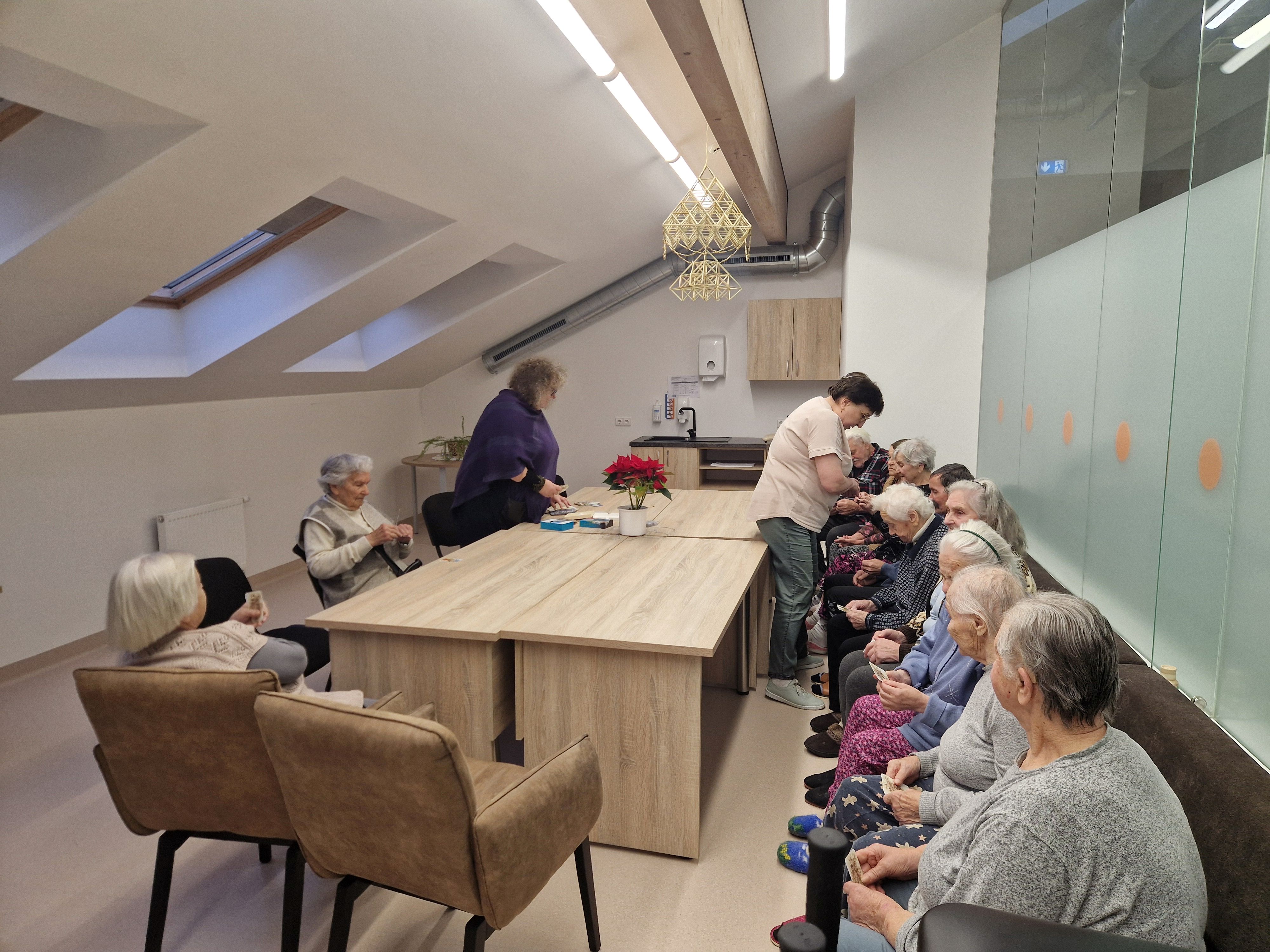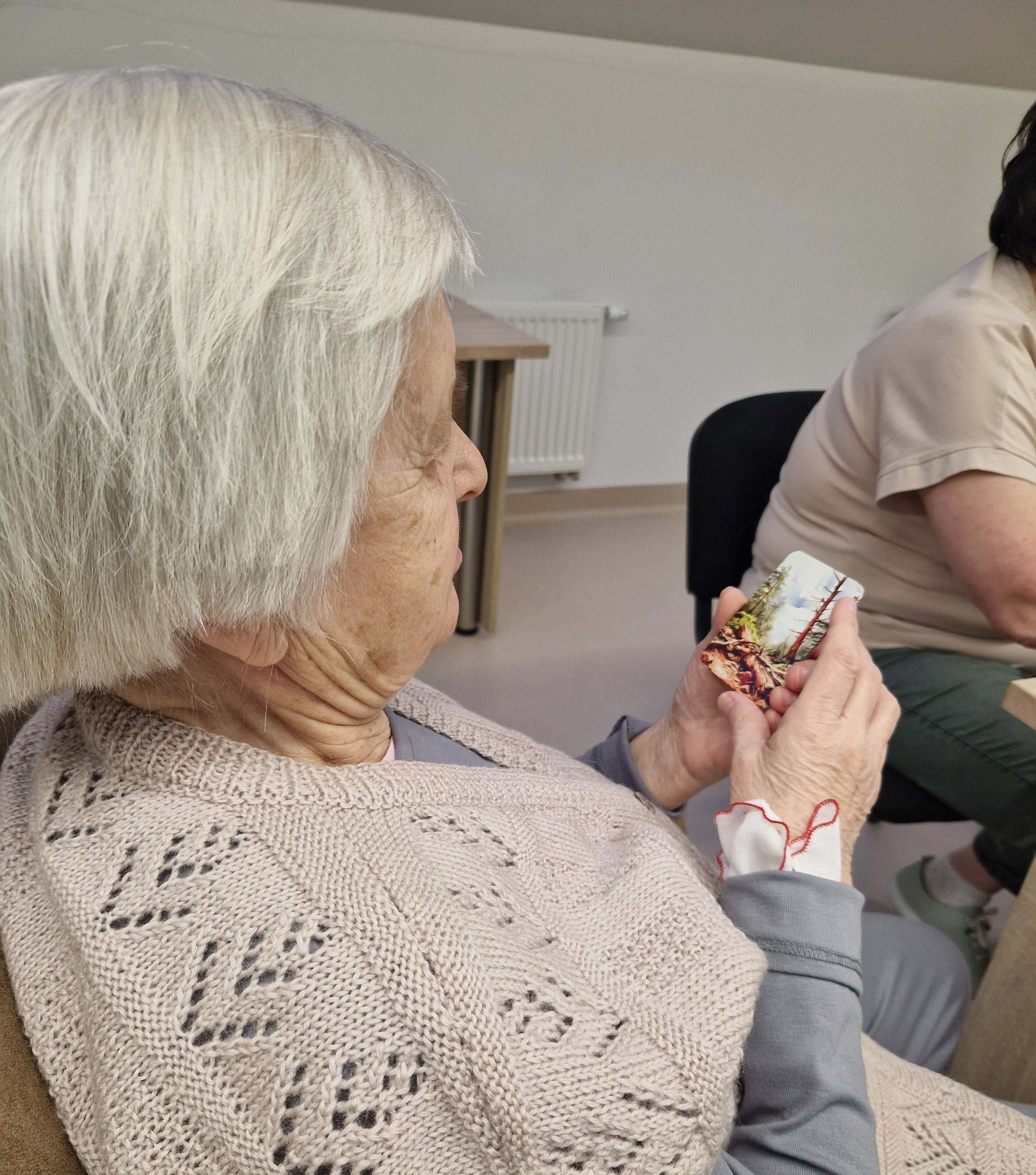 PSPC Slaugos ir palaikomojo gydymo skyriuje Neringa susitiko su ten slaugomais senoliais, pristatė Metaforines asociatyvines korteles (MAK). Tai nedidelio formato paveikslėliai, kuriuose gali būti pavaizduota žmonės, įvairūs objektai, realūs ir fantastiniai gyvūnai ar peizažai, ar tiesiog abstrakcijos. Šios kortelės kartais vadinamos terapinėmis, projekcinėmis, psichologinėmis kortomis. Susirinkusieji turėjo progą paanalizuoti įvairias skirtingas korteles, susieti jas su savo prisiminimais, pasidalinti mintimis bei pabendrauti su aplinkiniais.