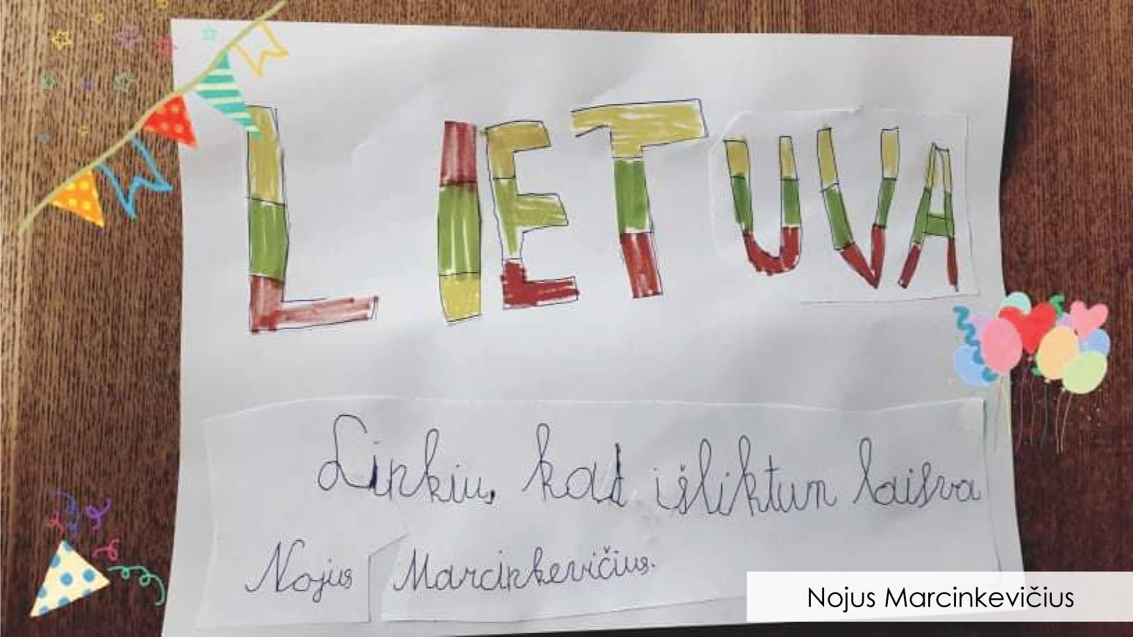 Šventinį laikotarpį – tarp Vasario 16-osios, Lietuvos valstybės atkūrimo dienos, ir Kovo 11-osios, Lietuvos nepriklausomybės atkūrimo dienos, – kvietėme skirti pokalbiams su vaikais apie Lietuvą ir jos laisvę, prisijungti prie iniciatyvos „Dideli mažųjų linkėjimai Lietuvai“ ir, sukūrus atviruką-linkėjimą, atsiųsti jį mums.