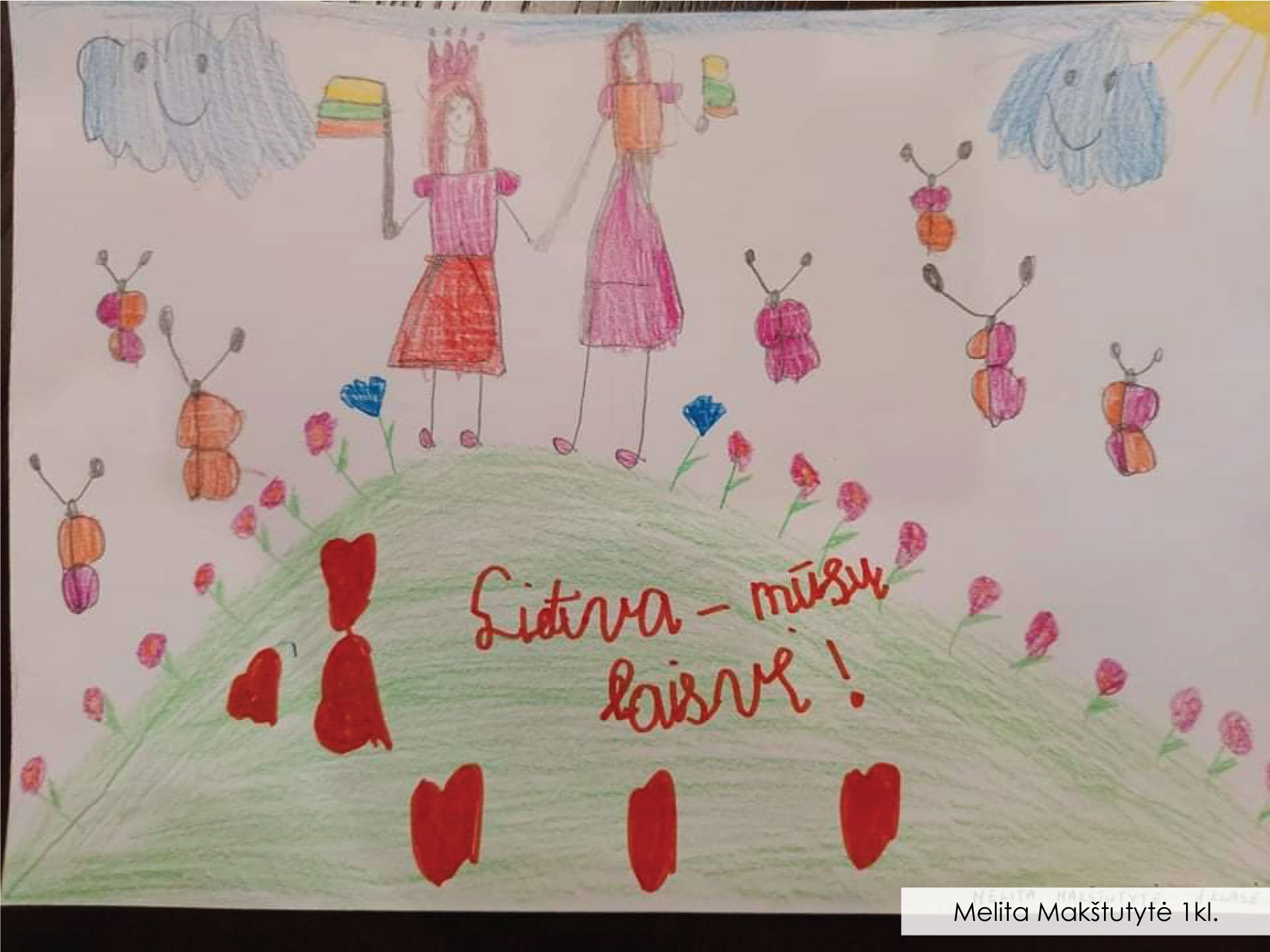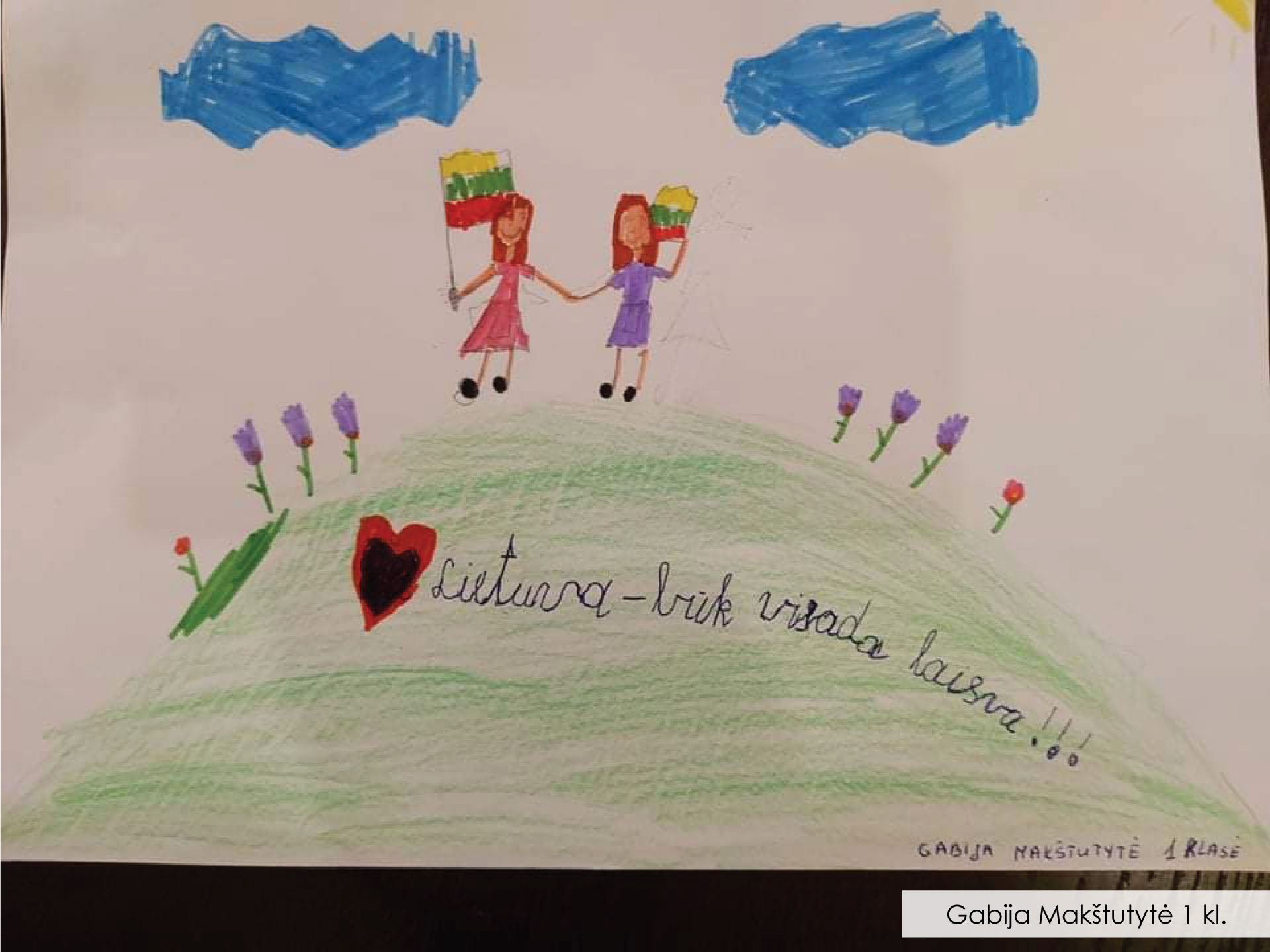 Džiaugiamės, kad sulaukėme 38 nuoširdumo, tyro laisvės džiugesio ir meilės kupinų vaikų darbelių. Juose lyg gražiausi žiedai skleidžiasi brandžios laisvės vaikų mintys. Jiems rūpi, kad Lietuva būtų švari, kad greičiau išsivaduotų iš pandemijos, jie linki būti stipriai, mylimai, degti kiekvieno širdyje, o vaizduojami žmonės – susikibę rankomis lyg Baltijos kelyje – jie vieningi.