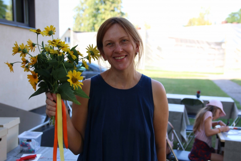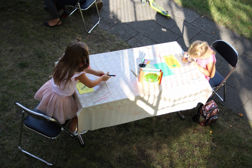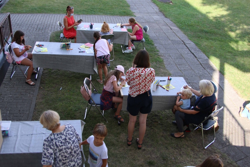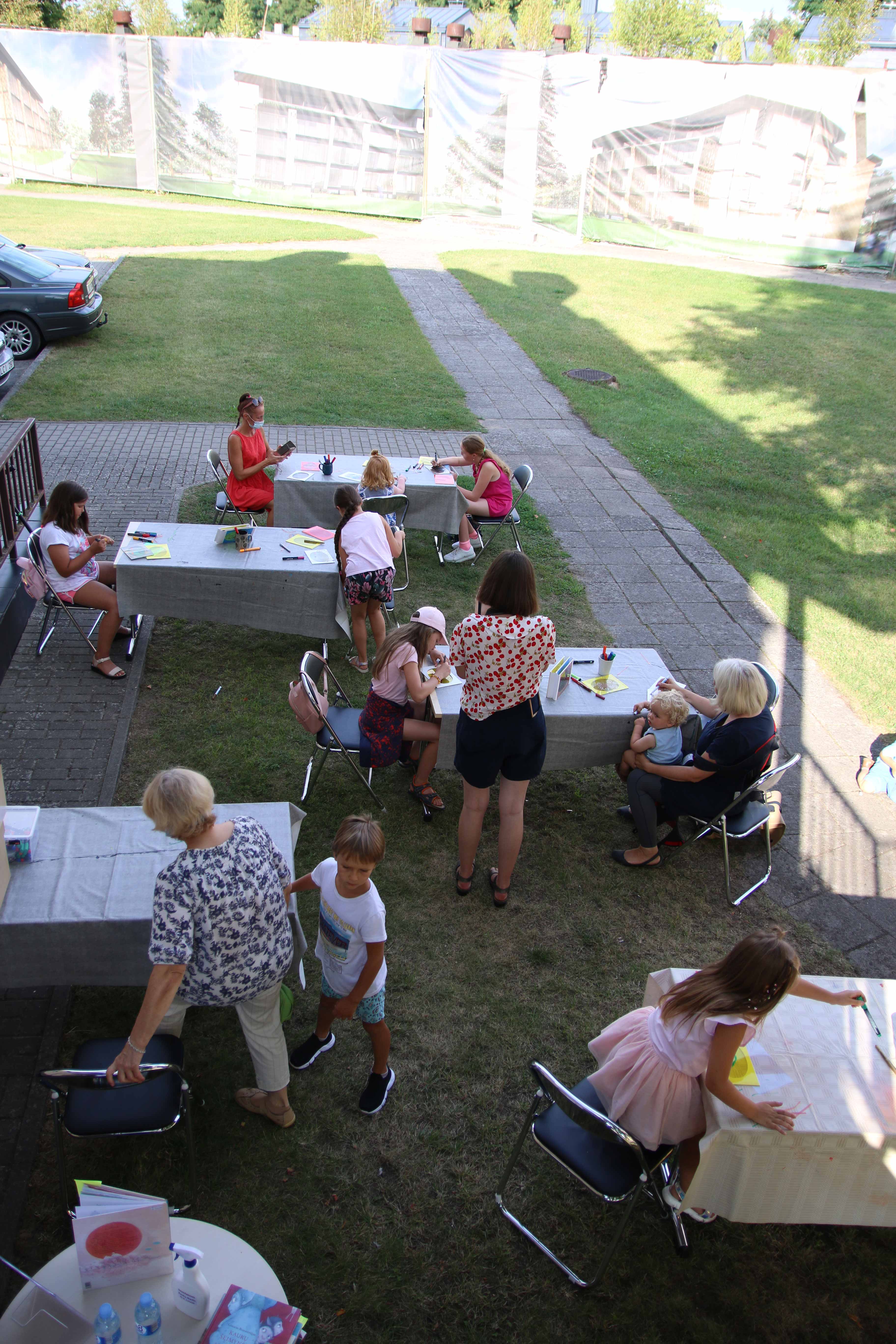 Karštą rugpjūčio 21 –ąją dieną lauke, prie Birštono viešosios bibliotekos, dailininkės Linos Dūdaitės pamokomi, mažieji, kai kurie lydimi mamyčių, senelių, kūrė paslaptingus ežerus. Ežerui sukurti dailininkė Lina Dūdaitė padalijo visiems ypatingą, „stebuklingą“, plastikinę plėvelę. Vaikai ant jos piešė, braižė, vėliau klijavo, kantriai laukė, kol popierius su plėvele prilips, kol dailininkė prieis, paaiškins, patars, parodys, kaip ir ką toliau daryti. Iš lėto tai ant vieno, tai ant kito stalo pasirodė ežerai, kiekvieno vis kitokie... ,kai kuriuose plaukiojo žuvytės, augo dumbliai, kai kuriuose apsigyveno mašinytės.:))))... .Taigi, drąsaus poetiškai nusiteikusio Paršelio, jo draugės karvės Adelaidos ir žuvies Sivužo kelionė į vaikų širdis tebesitęsia....