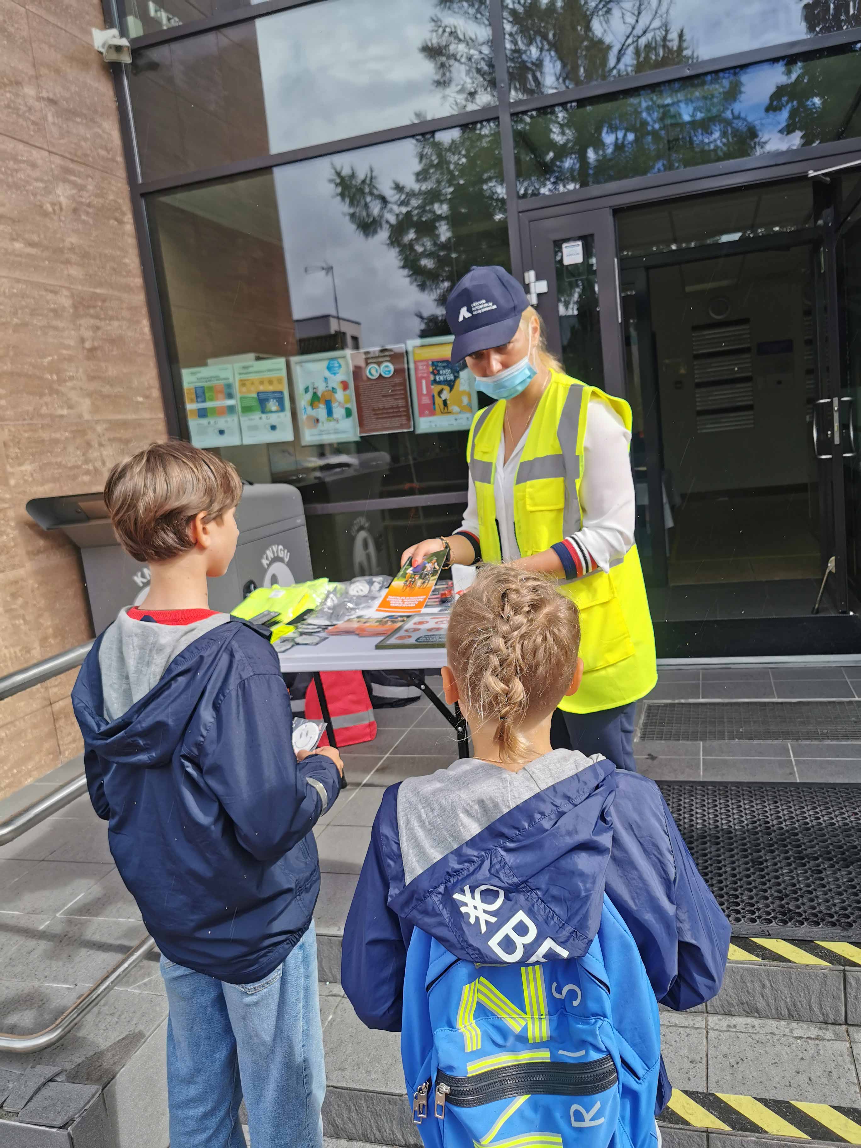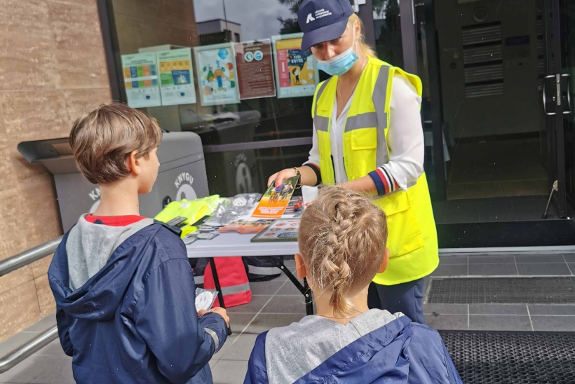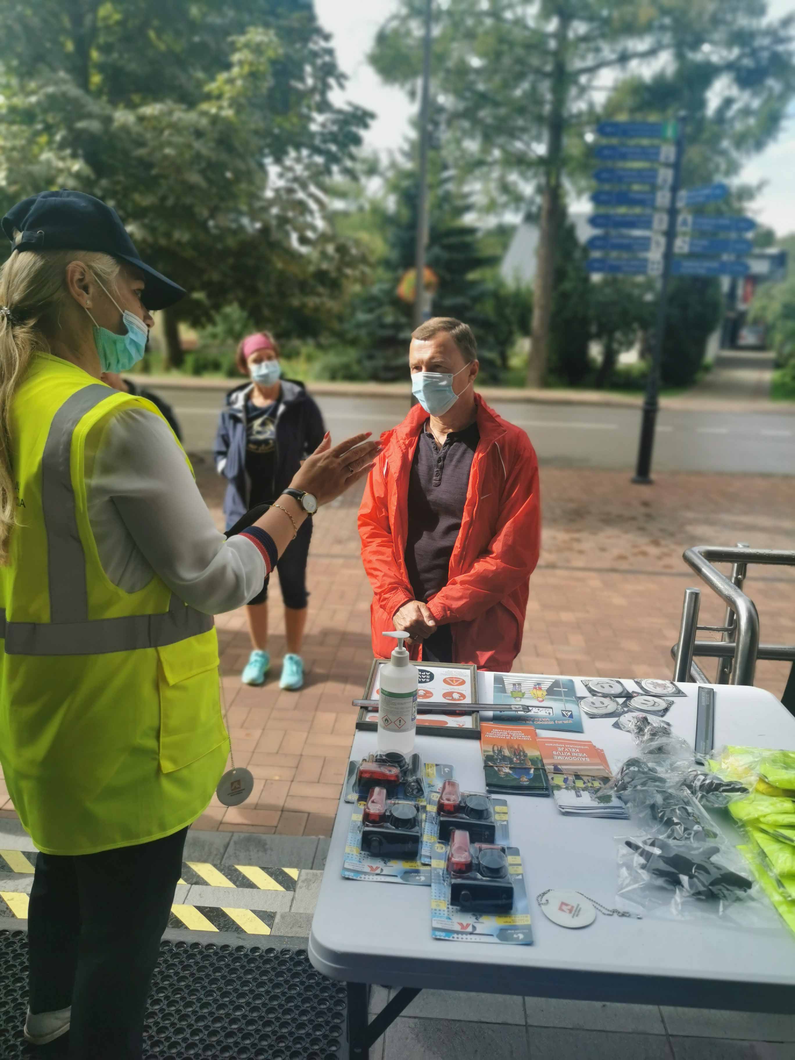 2020 08 28Rugpjūčio 27 d. rytmetį prie Birštono viešosios bibliotekos vyko Lietuvos automobilių kelių direkcijos akcija „Saugaus eismo stotelės“. Pirmieji stotelės lankytojai - Nemajūnų dienos centro vaikai, lydimi centro darbuotojų. Jie daug žinojo apie saugų eismą, aiškinosi nežinomus klausimus, eismo situacijas, ilgokai nenorėjo stotelės palikti, jautėsi, vaikams čia patiko. Vėliau apsilankiusieji birštoniečiai, aplinkinių gyvenviečių gyventojai ir miesto svečiai irgi domėjosi eismo taisyklėmis, klausinėjo jiems rūpimų klausimų, žinias tikrinosi atsakinėdami į pateiktus, atrodo, labai paprastus klausimėlius: ant kurios rankos nešiojamas atšvaitas? Nuo kiek metų vaikai gali važiuoti su dviračiu su tėveliais? Nuo kiek metų vieni? Ko negalima daryti einant pėsčiųjų perėja? Stotelės „šeimininkė“ Natalija Kvietkauskienė, Tarptautinių ir viešųjų ryšių skyriaus komunikacijos vadybininkė, ir jai talkinę Visvaldas Struckas ir Žilvinas Mikušauskas, Alytaus apskrities vyriausiojo policijos komisariato Birštono policijos komisariato tyrėjai, kiekvieną priėjusįjį pasitikdavo šypsodamiesi, pakalbindami, padrąsindami. Pasikalbėję, išsiaiškinę jiems rūpimus klausimus, išgirdę paprastus, aiškius atsakymus, patarimus, kaip saugiai elgtis tamsiu paros metu einant ar važiuojant dviračiais ir, dar apdovanoti įvairiais atšvaitais, kelių eismo knygelėmis, šviečiančiomis liemenėmis ir kt. reikalingais saugiam eismui daiktais, linkėjimais gyventi saugiai, lankytojai stotelę paliko gerai nusiteikę, o kartais ir susimąstę.